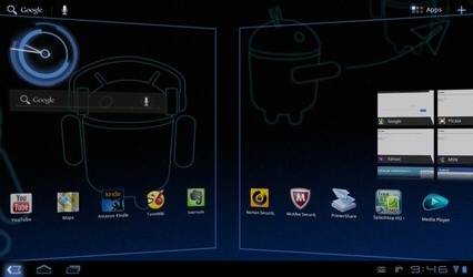 Yep, we're still on Honeycomb. Anyone that's used its replacement, Android 4.0, knows that it manages to solve and improve on so much of what went wrong. Toshiba's given us version 3.2 here and it's largely what you'd expect from the now outdated tablet version. At least it's the same undiluted stock Honeycomb experience that Google gifted to the Motorola Xoom, aside from a handful of inconsequential apps that were soon sidestepped. The stock Android keyboard is here, as is Swype, which is thoughtfully thrown in gratis. We had no qualms installing our own favorite keyboard once we started using the tablet and as with most 10.1-inch devices, one with a split keyboard worked the best.